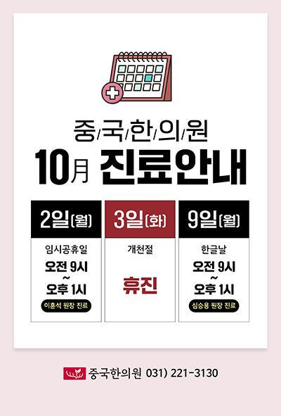 일정 참고하시어, 진료시 불편함이 없으시길 바랍니다.