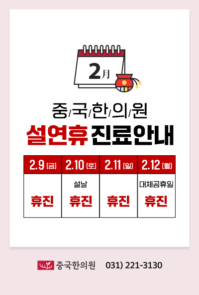 2월 9일(금) ~ 2월 12일(월) : 휴진
