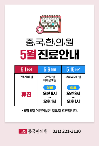 5월 6일(월) 어린이날 대체공휴일 : 오전 9시 ~ 오후 1시