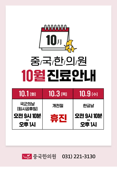 ★중국한의원 2024년 10월 진료안내★